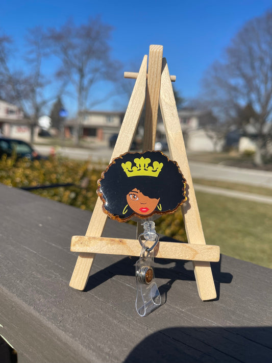 Afro Queen Retractable Badge Reel, Crown ID Holder, BGM Name Tag Holder, Nurse Gift