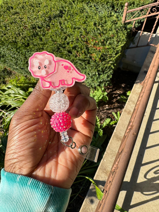 Baby Triceratops Retractable Badge Reel, Nurse Badge Holder, Cute Animal ID Holder